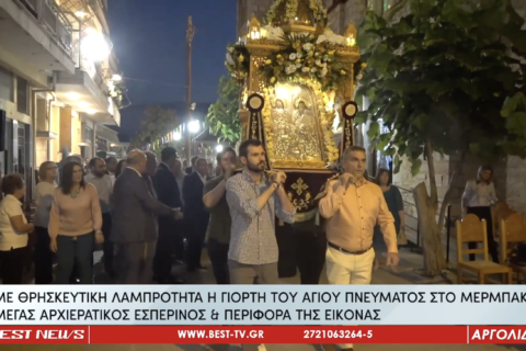 ΜΕ ΘΡΗΣΚΕΥΤΙΚΗ ΛΑΜΠΡΟΤΗΤΑ Η ΓΙΟΡΤΗ ΤΟΥ ΑΓΙΟΥ ΠΝΕΥΜΑΤΟΣ ΣΤΟ ΜΕΡΜΠΑΚΑ