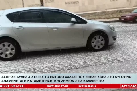 ΑΣΠΡΙΣΕ ΑΥΛΕΣ ΚΑΙ ΣΤΕΓΕΣ ΤΟ ΕΝΤΟΝΟ ΧΑΛΑΖΙ ΠΟΥ ΕΠΕΣΕ ΧΘΕΣ ΣΤΟ ΛΥΓΟΥΡΙΟ ΕΠΙΔΑΥΡΟΥ