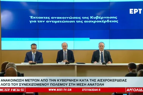 ΑΝΑΚΟΙΝΩΣΗ ΜΕΤΡΩΝ ΑΠΟ ΤΗΝ ΚΥΒΕΡΝΗΣΗ ΚΑΤΑ ΤΗΣ ΑΙΣΧΡΟΚΕΡΔΕΙΑΣ ΛΟΓΩ ΤΟΥ ΠΟΛΕΜΟΥ ΣΤΗ ΜΕΣΗ ΑΝΑΤΟΛΗ