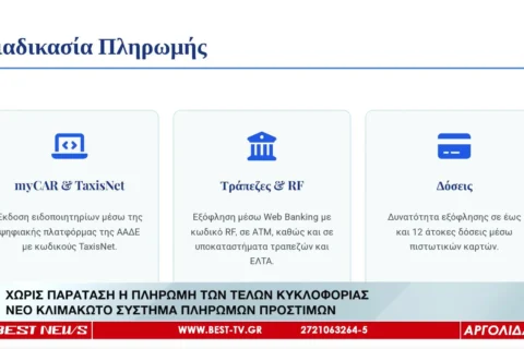 ΧΩΡΙΣ ΠΑΡΑΤΑΣΗ Η ΠΛΗΡΩΜΗ ΤΩΝ ΤΕΛΩΝ ΚΥΚΛΟΦΟΡΙΑΣ – ΝΕΟ ΚΛΙΜΑΚΩΤΟ ΣΥΣΤΗΜΑ ΠΛΗΡΩΜΩΝ ΠΡΟΣΤΙΜΩΝ