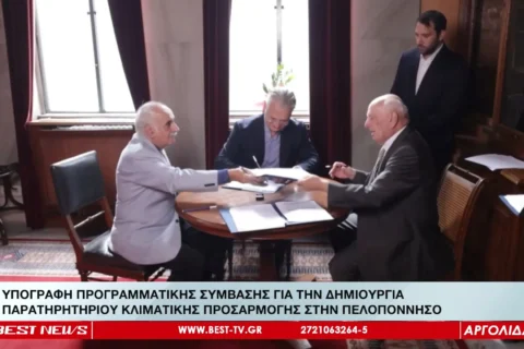 ΥΠΟΓΡΑΦΗ ΠΡΟΓΡΑΜΜΑΤΙΚΗΣ ΣΥΜΒΑΣΗΣ ΓΙΑ ΔΗΜΙΟΥΡΓΙΑ ΠΑΡΑΤΗΡΗΤΗΡΙΟΥ ΚΛΙΜΑΤΙΚΗΣ ΠΡΟΣΑΡΜΟΓΗΣ ΣΤΗΝ ΠΕΛΟΠ/ΣΟ