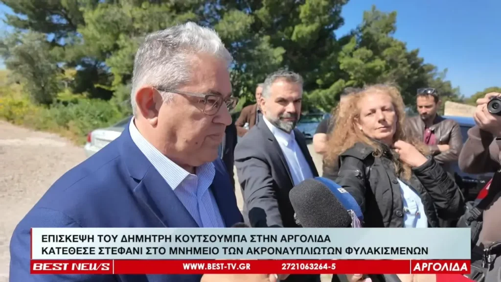 ΕΠΙΣΚΕΨΗ ΤΟΥ ΔΗΜΗΤΡΗ ΚΟΥΤΣΟΥΜΠΑ ΣΤΗΝ ΑΡΓΟΛΙΔΑ – ΣΤΕΦΑΝΙ ΣΤΟ ΜΝΗΜΕΙΟ ΤΩΝ ΑΚΡΟΝΑΥΠΛΙΩΤΩΝ ΦΥΛΑΚΙΣΜΕΝΩΝ