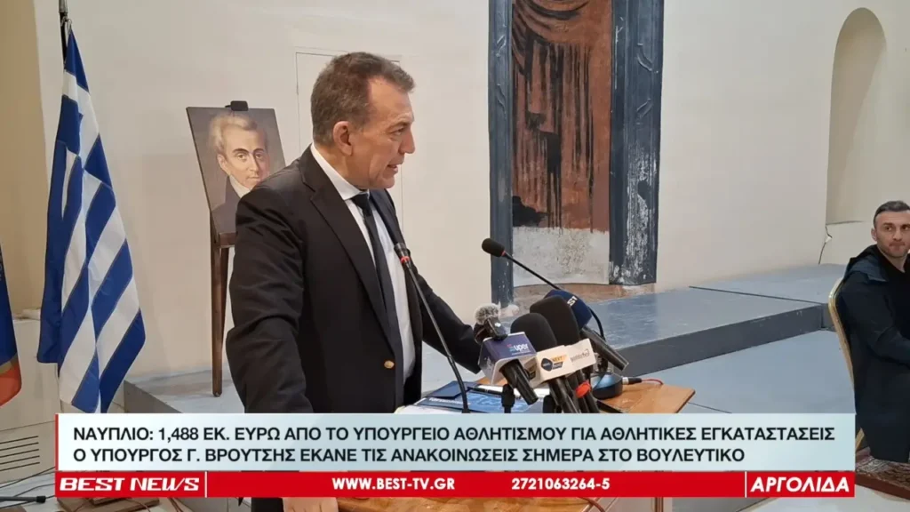 ΓΙΑΝΝΗΣ ΒΡΟΥΤΣΗΣ: 1488000 ΕΥΡΩ ΔΟΘΗΚΑΝ ΑΠΟ ΤΟ ΥΠΟΥΡΓΕΙΟ ΑΘΛΗΤΙΣΜΟΥ ΓΙΑ ΤΙΣ ΑΘΛΗΤΙΚΕΣ ΕΓΚΑΤΑΣΤΑΣΕΙΣ ΤΟΥ ΝΑΥΠΛΙΟΥ