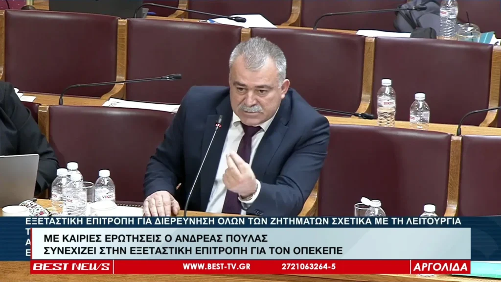 ΜΕ ΚΑΙΡΙΕΣ ΕΡΩΤΗΣΕΙΣ Ο ΑΝΔΡΕΑΣ ΠΟΥΛΑΣ ΣΥΝΕΧΙΖΕΙ ΣΤΗΝ ΕΞΕΤΑΣΤΙΚΗ ΕΠΙΤΡΟΠΗ ΓΙΑ ΤΟΝ ΟΠΕΚΕΠΕ