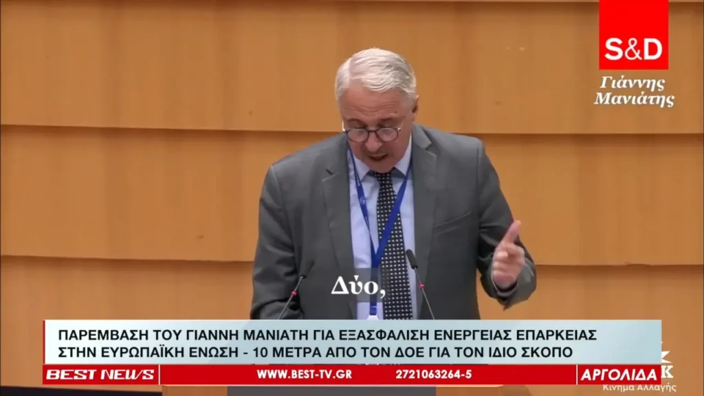 ΠΑΡΕΜΒΑΣΗ ΤΟΥ ΓΙΑΝΝΗ ΜΑΝΙΑΤΗ ΓΙΑ ΕΞΑΣΦΑΛΙΣΗ ΕΝΕΡΓΕΙΑΣ ΕΠΑΡΚΕΙΑΣ ΣΤΗΝ ΕΥΡΩΠΑΪΚΗ ΕΝΩΣΗ