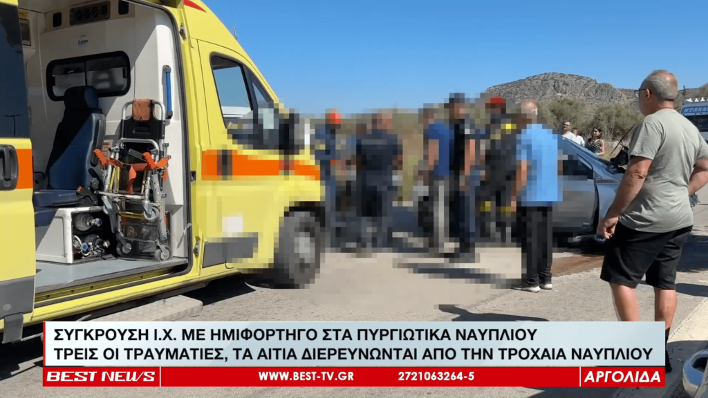ΤΡΕΙΣ ΤΡΑΥΜΑΤΙΕΣ ΣΕ ΣΥΓΚΡΟΥΣΗ ΙΧ ΜΕ ΗΜΙΦΟΡΤΗΓΟ ΣΤΑ ΠΥΡΓΙΩΤΙΚΑ ΝΑΥΠΛΙΟΥ